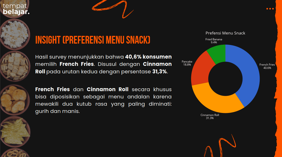 Research Execution: Conducted a quantitative survey to evaluate consumer preferences for 4 specific snack options (French Fries, Pancake, Cinnamon Roll, Fried Banana).